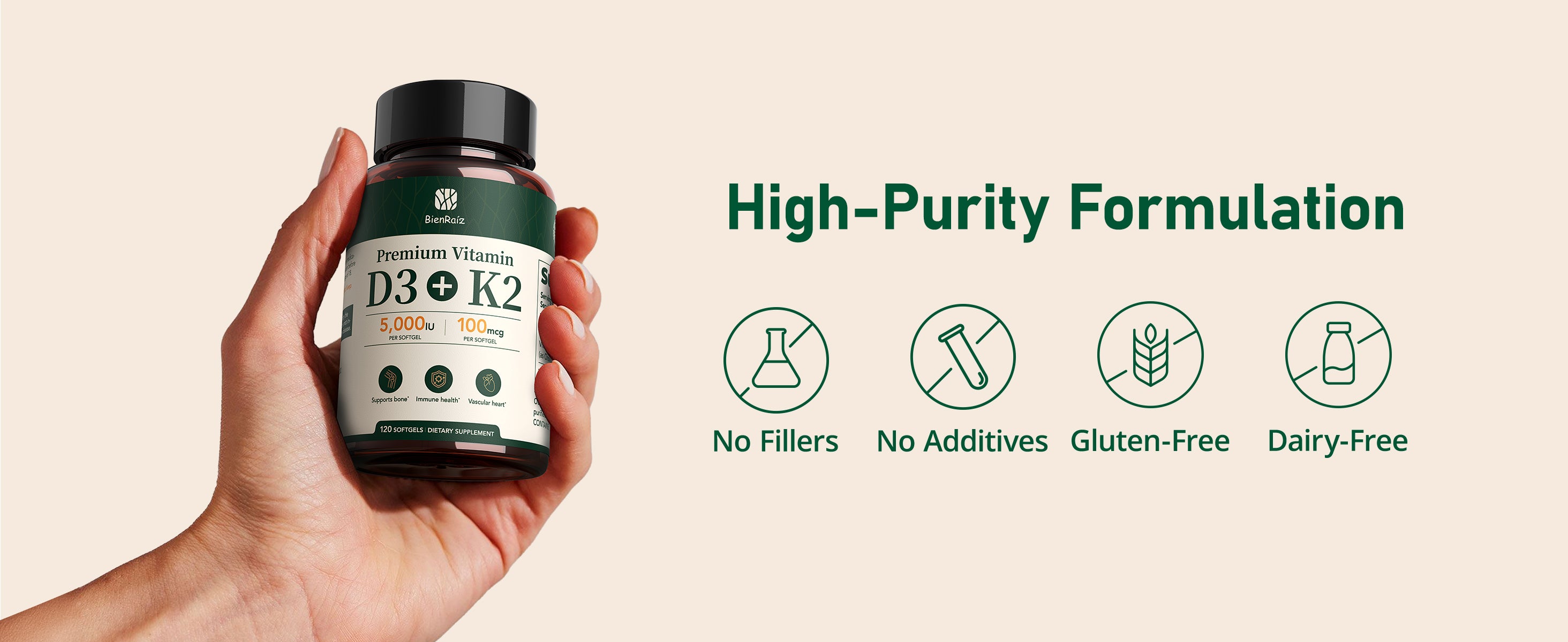 - High-Potency 2-in-1 Formula: Combines 5000 IU Vitamin D3 with 100 mcg K2 MK-7 to support bone strength, immune health, and proper calcium absorption.