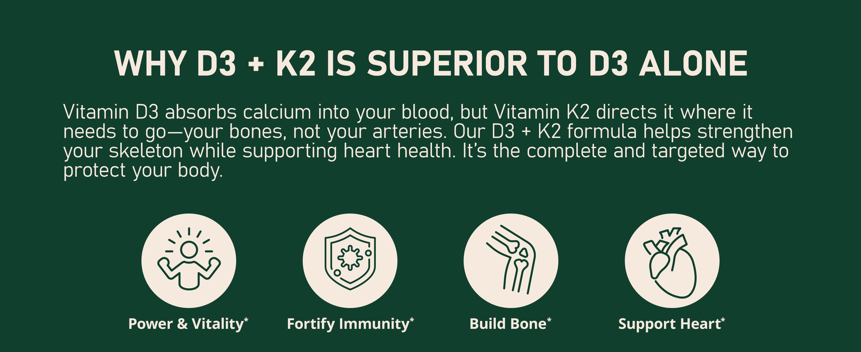 - Superior Calcium Utilization: D3 boosts absorption while K2 guides calcium into bones and away from arteries for targeted, effective support.