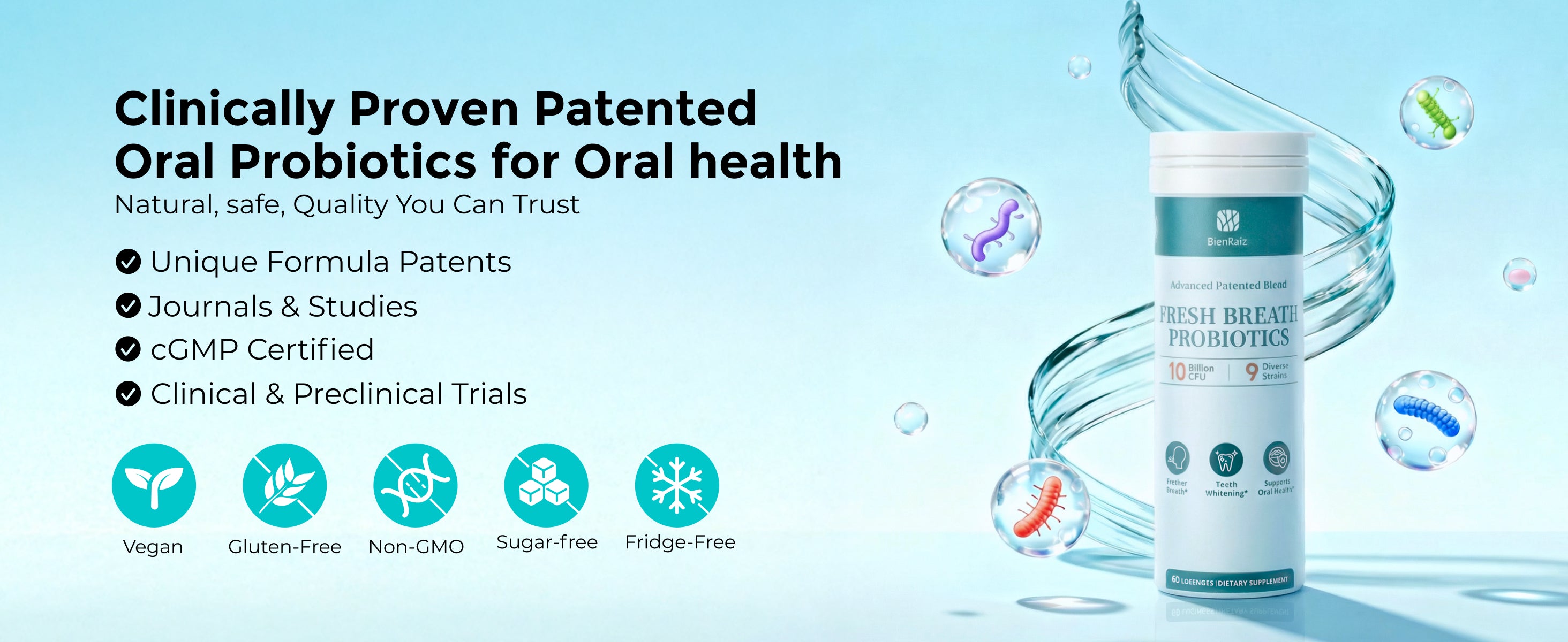 - Targets Bad Breath at the Source: Unlike temporary fixes like gum or mints, BienRaíz Oral Probiotics work by balancing the oral microbiome—helping address the root causes of halitosis for longer-lasting freshness.